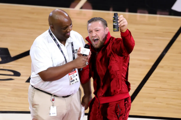 Ο ΜακΓκρέγκορ, ο οποίος προωθούσε ένα σπρέι για την ανακούφιση του πόνου, θέλησε να κάνει πλάκα με τη μασκότ των Μαϊάμι Χιτ, όμως μία γροθιά του ήταν υπερβολικά δυνατή και έριξε κάτω τον Μπέρνι.