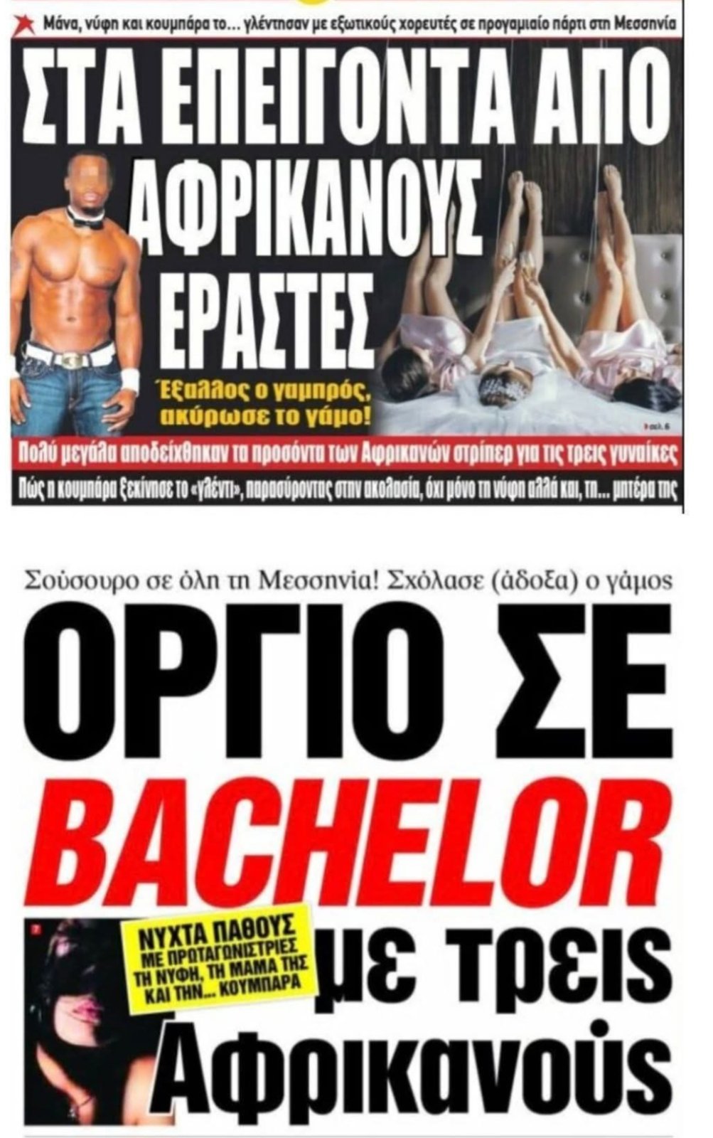 Όργιο σε Bachelor στη Μεσσηνία με Αφρικανούς εραστές διέλυσε δύο οικογένειες… Στο νοσοκομείο η νύφη με τη μάνα της και την κουμπάρα