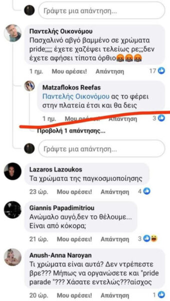 Συγκεκριμένα, τα υβριστικά σχόλια έγιναν κάτω από την ανάρτηση της Ντανιέλας Νικόλοβα-Σιδηροπούλου για την εκδήλωση που πραγματοποιήθηκε σήμερα στην πόλη. Η εικαστικός επέλεξε να «κλείσει» το ζήτημα με μία απάντηση που δεν επιδέχεται περαιτέρω σχολιασμό: