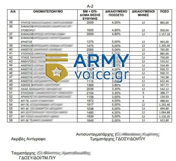 Μπόνους υπάρχει για 58 στελέχη της ΓΔΟΣΥ, αν και τα 3 που λαμβάνουν δεν υπηρετούν καν στην ΓΔΟΣΥ. Το μπόνους δεν θα το πάρουν ούτε τα στελέχη των Γενικών Επιτελείων… Που πιέστηκαν και υπερέβησαν εαυτούς σε εργασία πολλές φορές για να «βγουν οι στόχοι» του υπουργείου.