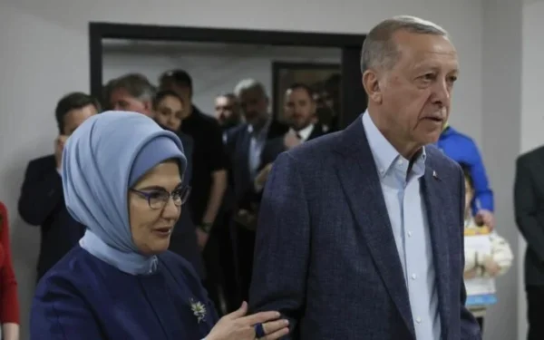 Ο Τούρκος πρόεδρος, μαζί με την σύζυγό του, Εμινέ, περίμεναν υπονομευτικά τη σειρά τους έξω από το εκλογικό τμήμα. Ενώ, τους κατέγραφαν οι κάμερες.