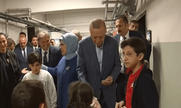 Ο πρόεδρος της Τουρκίας, αφότου ψήφισε, ευχαρίστησε τα μέλη του εκλογικού κέντρου για τη διαδικασία… Και στη συνέχεια έκανε δηλώσεις στους δημοσιογράφους.