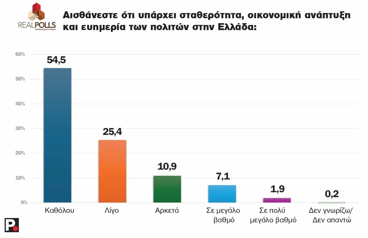 Πως η πλειοψηφία των πολιτών αισθάνεται ότι η χώρα δεν κινείται προς την σωστή κατεύθυνση, ούτε ότι υπάρχει σταθερότητα, οικονομική ανάπτυξη και ευημερία.