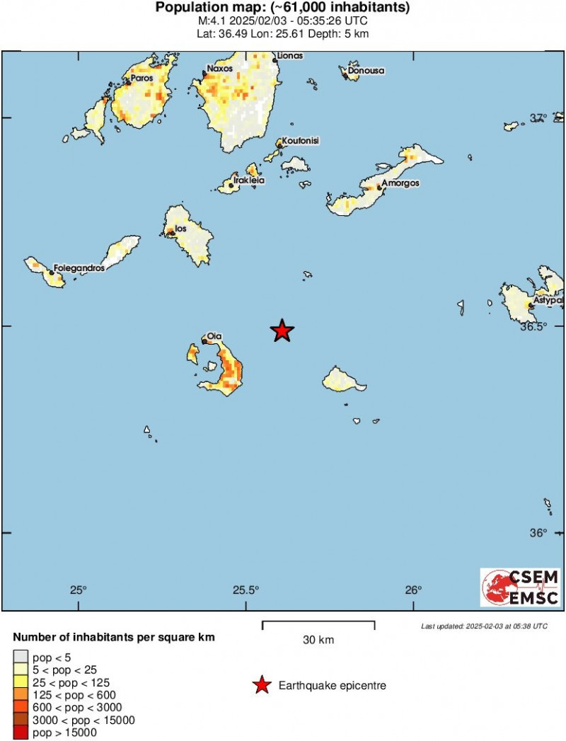 Λόγω της έντονης σεισμικής δραστηριότητας, η κρατική μηχανή βρίσκεται σε επιφυλακή. Ως προληπτικό μέτρο, τα σχολεία θα παραμείνουν κλειστά σήμερα, Δευτέρα 3 Φεβρουαρίου, στη Θήρα, την Ανάφη, την Ίο και την Αμοργό. Επίσης, συστήνεται στους πολίτες να αποφεύγουν συγκεντρώσεις σε κλειστούς χώρους και να μην προσεγγίζουν τα λιμάνια.