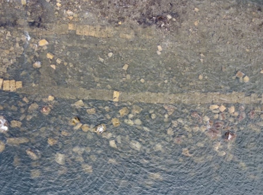 Η απόσυρση των υδάτων δημιούργησε μικρούς σχηματισμούς στην ακτογραμμή, με τους κατοίκους της περιοχής να σπεύσουν να απαθανατίσουν τις εικόνες με τα κινητά τους τηλέφωνα. Παράλληλα, εναέριες λήψεις, πιθανότατα από drone, κατέγραψαν μια πιο ολοκληρωμένη εικόνα των αρχαιολογικών καταλοίπων, ενισχύοντας το ενδιαφέρον για την ιστορική σημασία του ευρήματος.