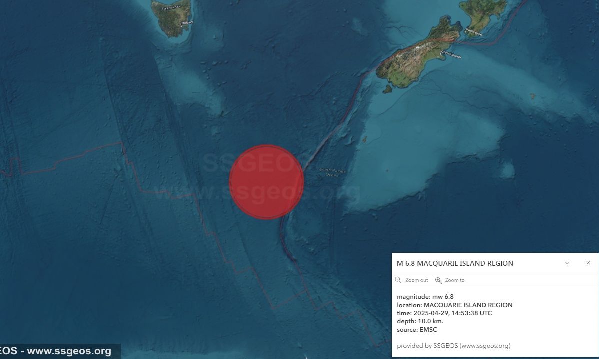 Σεισμός 6,8 Ρίχτερ έπληξε περιοχή κοντά στο νησί Μακουάρι (νότια Νέας Ζηλανδίας), μνημείο παγκόσμιας κληρονομιάς της UNESCO.