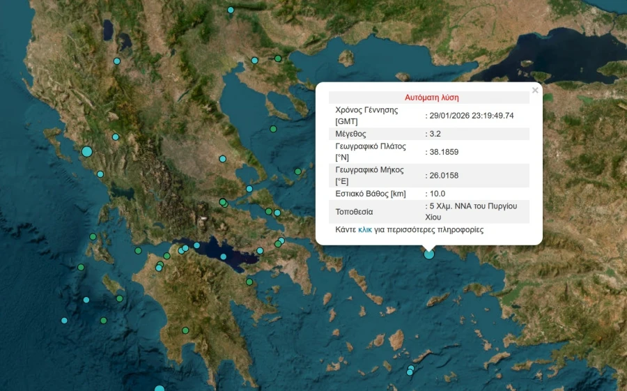Σύμφωνα με το EMSC, το επίκεντρο εντοπίστηκε 20 χιλιόμετρα νότια – νοτιοδυτικά από την πόλη της Χίου. Μέχρι στιγμής δεν έχουν αναφερθεί ζημιές ή προβλήματα, ενώ οι σεισμολόγοι παρακολουθούν την εξέλιξη της μετασεισμικής δραστηριότητας στην περιοχή, η οποία θεωρείται φυσιολογική.