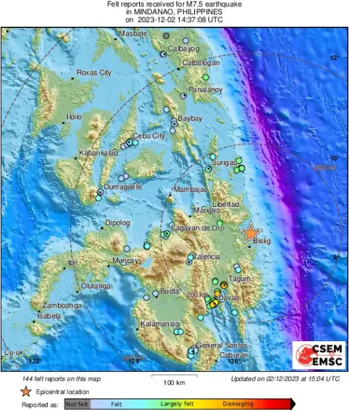 Ο σεισμός στις Φιλιππίνες έγινε στις 16.37 ώρα Ελλάδας (22.37 τοπική ώρα) και σύμφωνα με την αυτόματη λύση του Ευρωμεσογειακού Σεισμολογικού Κέντρου, είχε μέγεθος 7,5 ρίχτερ!