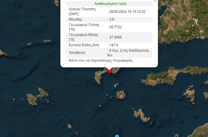 Το επίκεντρο του σεισμού εντυοπίστηκε 8χλμ δυτικά της Καρδάμαινας, ενώ το εστιακόι βάθος υπολογίζεται στα 148χλμ.