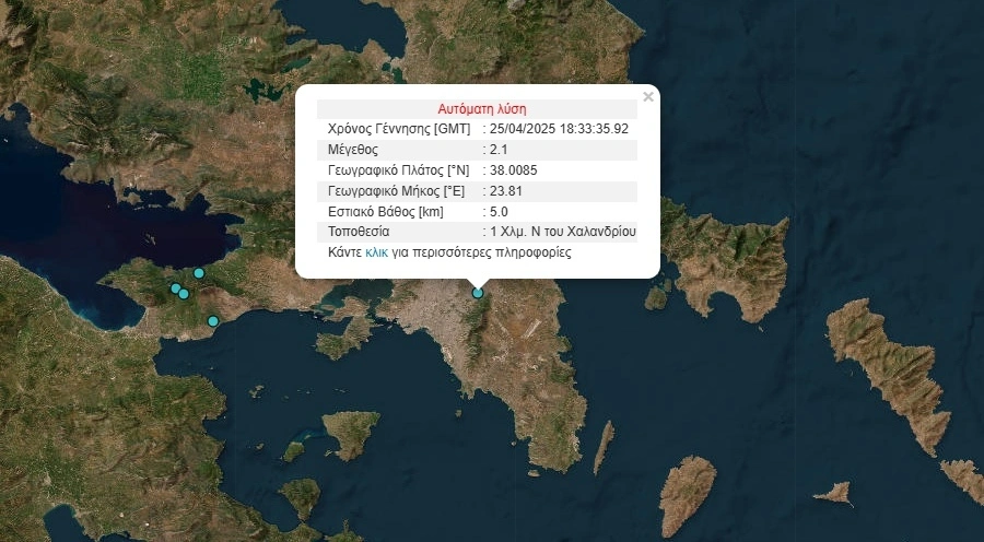 Σεισμός στην Αττική πριν από λίγο ταρακούνησε το Χαλάνδρι Το επίκεντρο και τα στοιχεία από το Γεωδυναμικό Ινστιτούτο