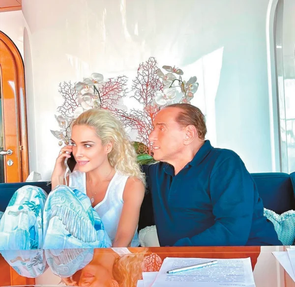 Πρόκειται εδώ και τρία χρόνια για την επίσημη συνοδό, έμπιστη σύμβουλο, σύντροφο, αρραβωνιαστικιά και εικονικά σύζυγό του με… συμβολικό γάμο. Ολόκληρο σόου κόστους 400.000 ευρώ παρέδωσε ο Μπερλουσκόνι πέρυσι, το Σάββατο 19 Μαρτίου του 2022, στην ιδιοκτησίας του αχανή ιστορική Βίλα Γκερνέτο του 18ου αιώνα στην πόλη Λέσμο, έξω από τη Μόντσα. Διοργάνωσε εκεί υπερπολυτελή τελετή γάμου με την εκλεκτή της καρδιάς του. Ντύθηκε με σταυρωτό μπλε κοστούμι ραμμένο στα μέτρα του γαμπρός και αυτή νύφη μέσα σε ένα αραχνοΰφαντο νυφικό, δημιουργία Γάλλου σχεδιαστή. Αντάλλαξαν αιώνιους όρκους, έκοψαν πολυώροφη γαμήλια τούρτα, δεξιώθηκαν χλιδάτα τους καλεσμένους τους, αλλά κατά τα άλλα δεν ήταν πραγματικός γάμος. Από το μιντιακό Μπερλουσκονικό σύμπαν επικοινωνήθηκε ότι ήταν ένα πάρτυ με στυλ για να γιορταστεί η αγάπη.