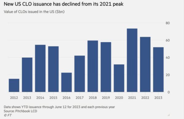 Γενικότερα, πολλές CLOs περιορίζουν τις αγορές χρέους τους – περιορίζοντας τις δυνατότητες χρηματοδότησης δανειοληπτών χαμηλότερης διαβάθμισης – λόγω των περιορισμών στο πότε και τι μπορούν να αγοράσουν, καθώς και του ευρύτερου οικονομικού περιβάλλοντος.