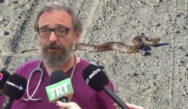 Όλα τα άλλα που κάνει ο κόσμος από φήμες και διαδόσεις είναι πιο επικίνδυνα απ’ το δάγκωμα του φιδιού… Το δάγκωμα του φιδιού που εκτός από τις πολύ σπάνιες περιπτώσεις που εμφανίζεται αλλεργία… Είναι βλαπτικό σε διάστημα ωρών και ημερών, δεν είναι κάτι για να τρέχει κανείς στο δευτερόλεπτο. Άρα υπάρχει ο χρόνος να μη κάνει κανείς τίποτε… Να ξεπλύνει την πηγή, να βάλει αντισηπτικό και μετά να πάει σε μία υγειονομική δομή».