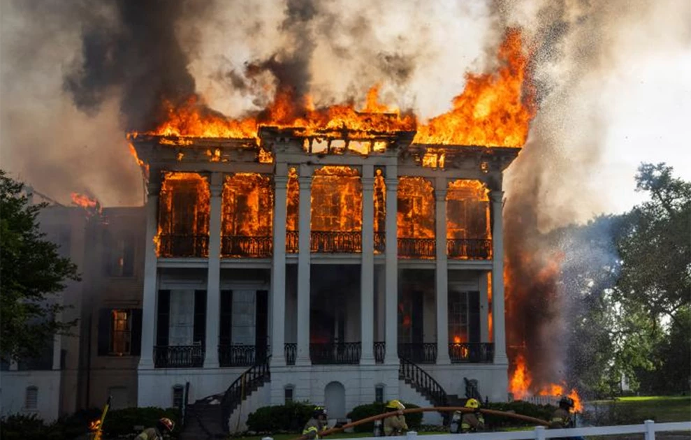 Το πρώτο συμβάν ήταν η μυστηριώδης πυρκαγιά που κατέστρεψε το ιστορικό σπίτι της φυτείας Nottoway, μεταξύ του Μπατόν Ρουζ και της Νέας Ορλεάνης, στις 15 Μαΐου. Η έκταση της ζημιάς και οι συνθήκες της πυρκαγιάς άφησαν πολλά αναπάντητα ερωτήματα.