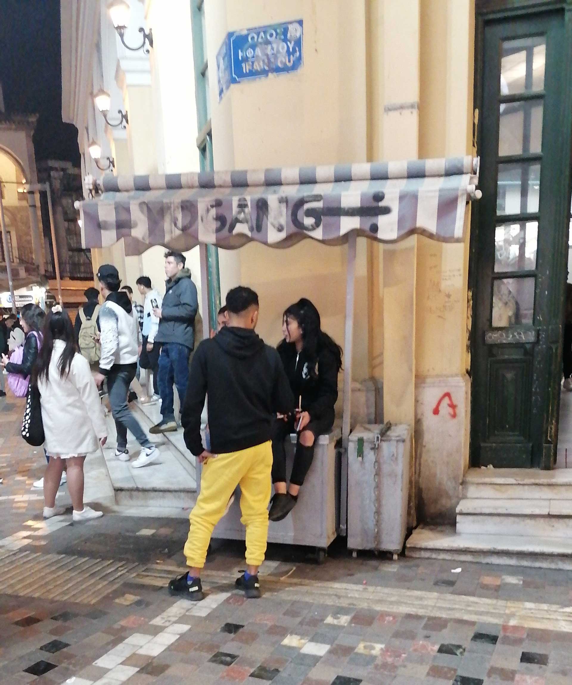 Από την Ερμού, με κατεύθυνση το Μοναστηράκι όλα, σχεδόν, είναι φυσιολογικά… Με ανθρώπους όλων των ηλικιών να κάνουν τη βραδινή τους βόλτα. Προσπερνάμε τους Αφρικανούς με τα τύμπανα που χορεύουν και τις νεαρές Ρομά που πουλάνε λουλούδια… Φτάνοντας στα σκαλάκια έξω από τον σταθμό του ΗΣΑΠ και του Μετρό.