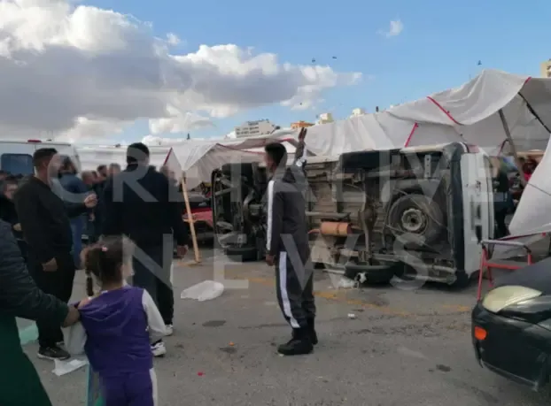 Σοκ στο Ηράκλειο: Ο άνεμος τούμπαρε φορτηγό σε λαϊκή αγορά και από θαύμα δεν θρηνήσαμε θύματα