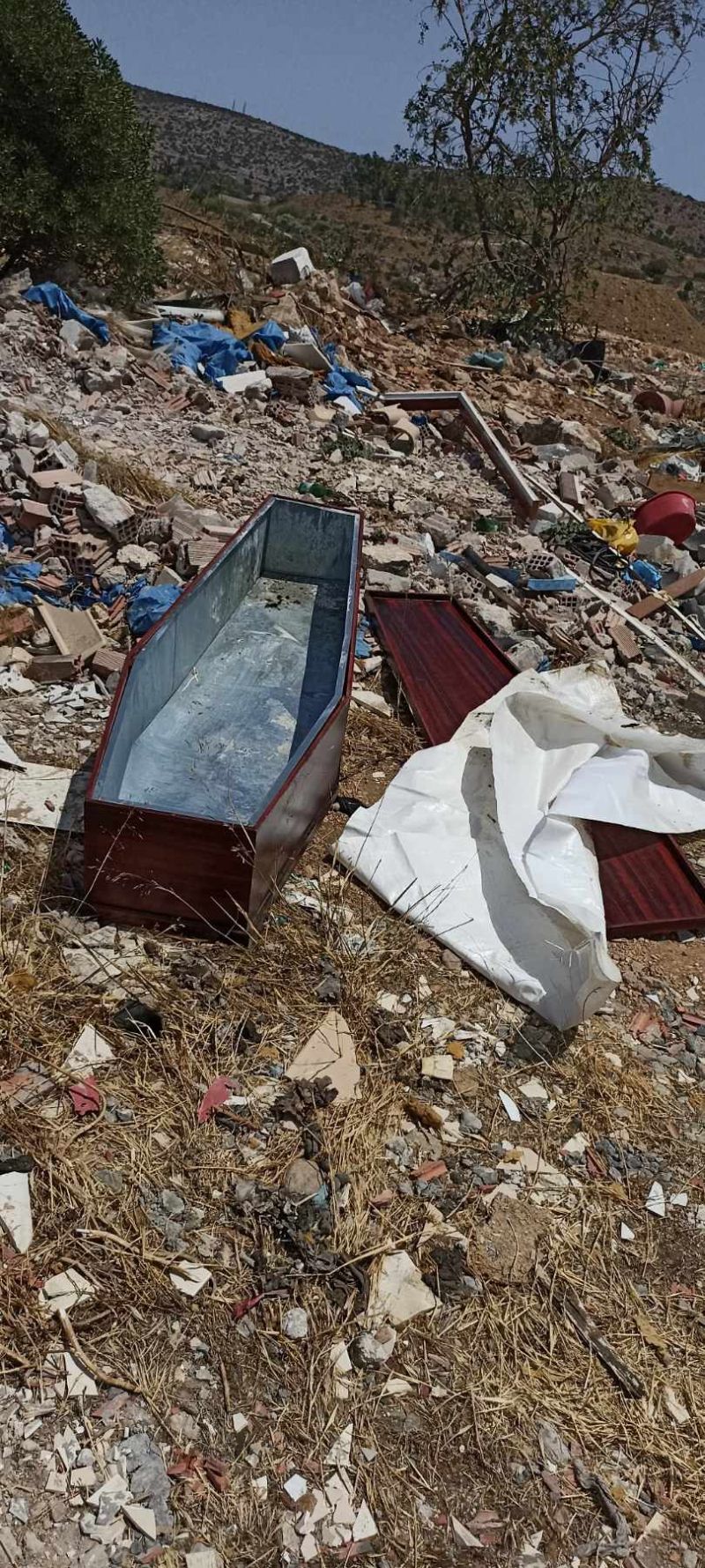 Περίοικοι βρέθηκαν αντιμέτωποι με το μακάβριο θέαμα νωρίς το πρωί και ειδοποίησαν αμέσως τις Αρχές. Σύμφωνα με αναγνώστη, το φέρετρο είχε εμφανή ίχνη χρήσης, καθώς βρέθηκαν ίχνη αίματος και σκουλήκια.