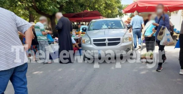 Το όχημα οδηγούσε ένας ιερέας ο οποίος δεν είδε την προειδοποιητική πινακίδα stop και «μπούκαρε» στο χώρο εκεί που ήταν οι πάγκοι αλλά και πολίτες που ψώνιζαν και μάλιστα με μεγάλη ταχύτητα.