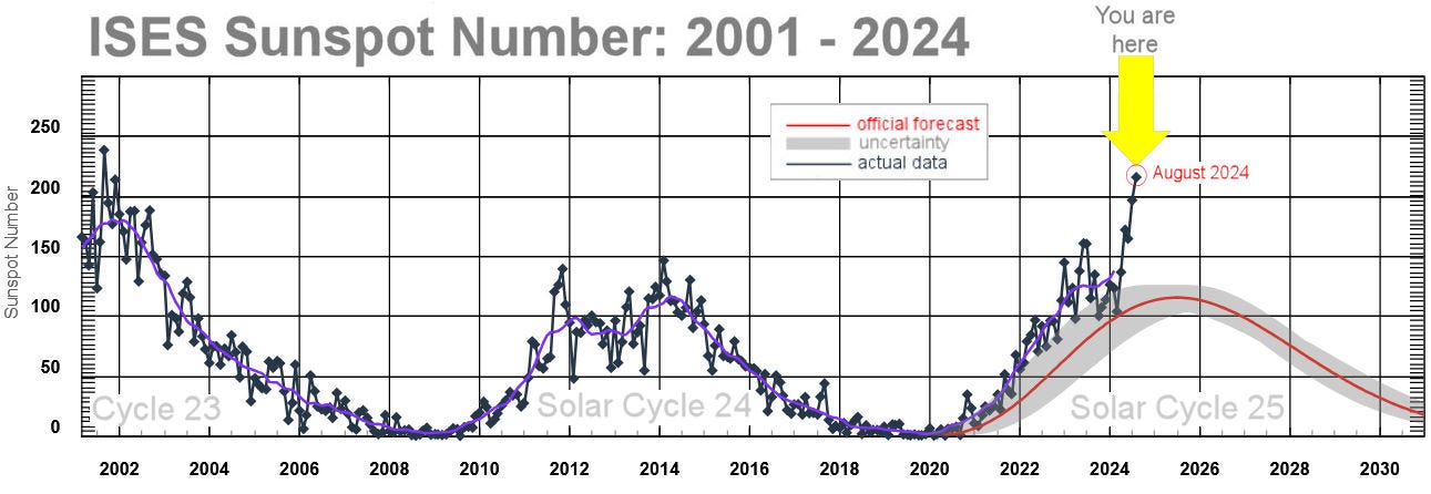 Οι τελευταίοι μήνες έχουν δείξει μια εκθετική αύξηση στις ηλιακές κηλίδες, και εάν η τάση αυτή συνεχιστεί, μπορεί να οδηγήσει σε ισχυρότερες γεωμαγνητικές καταιγίδες, όπως αυτή του Μαΐου 2024, που ήταν η ισχυρότερη των τελευταίων 20 ετών. Τότε, το σέλας ήταν ορατό πολύ νοτιότερα από το συνηθισμένο, σε περιοχές όπως η Φλόριντα και το Μεξικό.