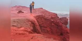 Ένα μοναδικό θέαμα παρουσιάστηκε στις ακτές ενός ιρανικού νησιού, όπου η ακτογραμμή βάφτηκε κατακόκκινη μετά από έντονες βροχοπτώσεις.