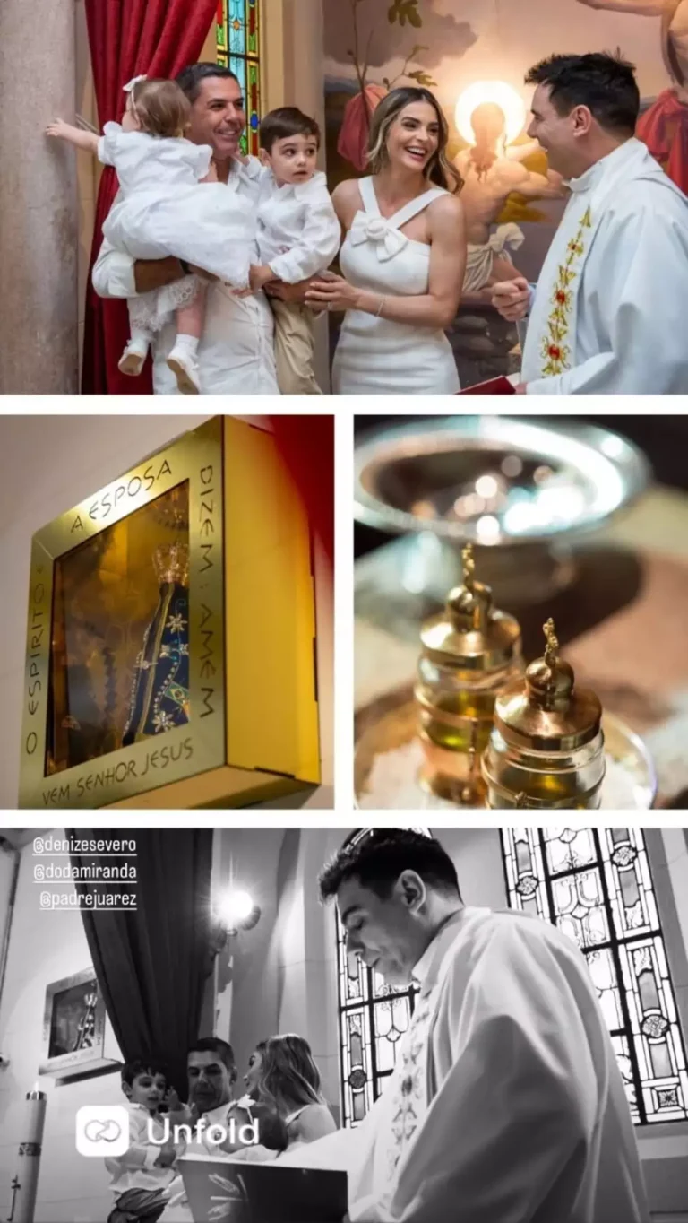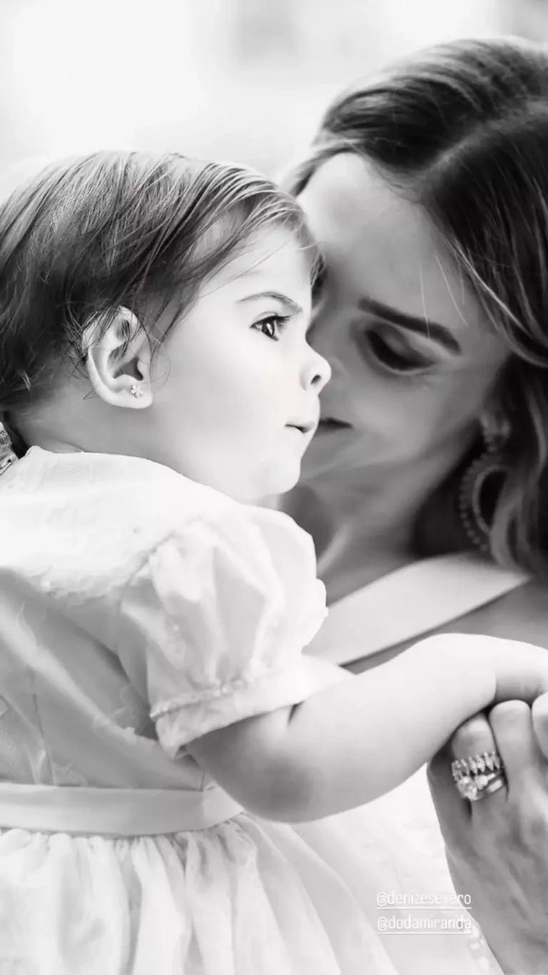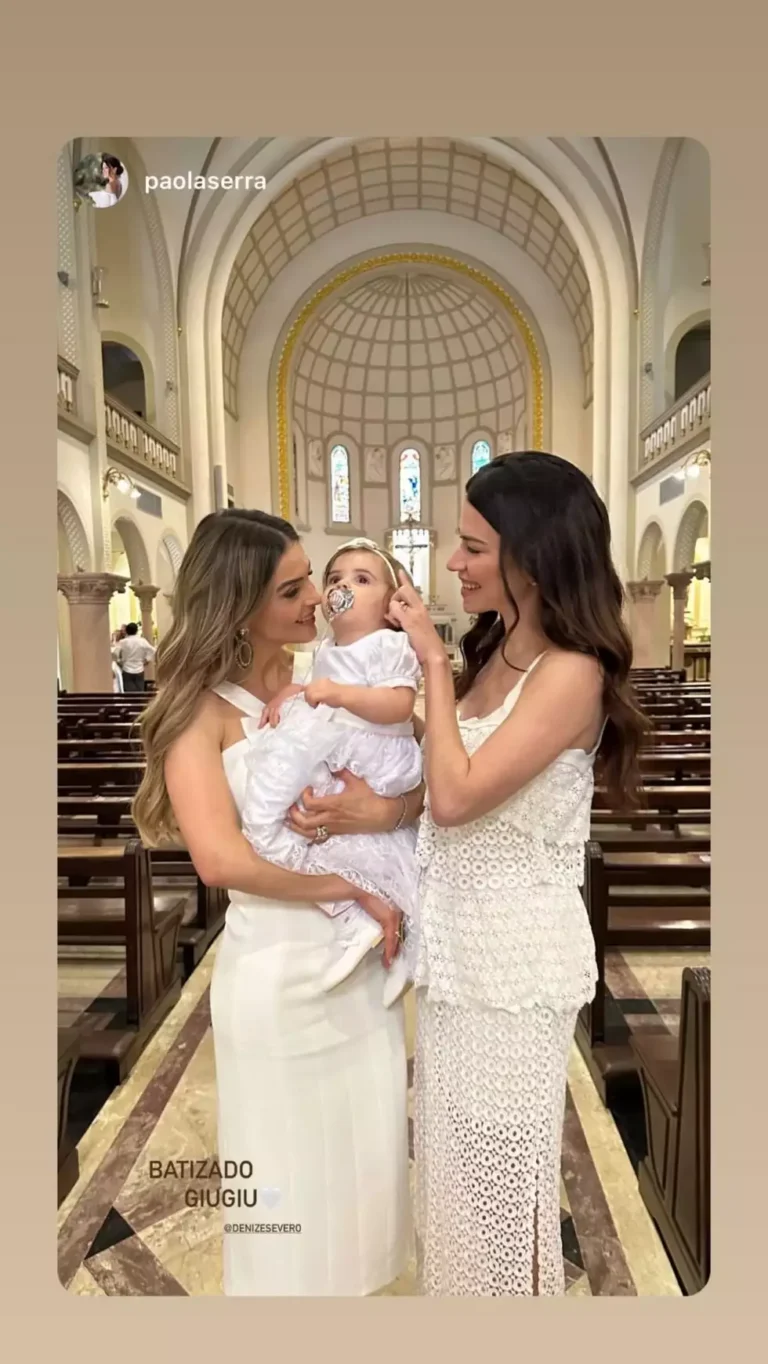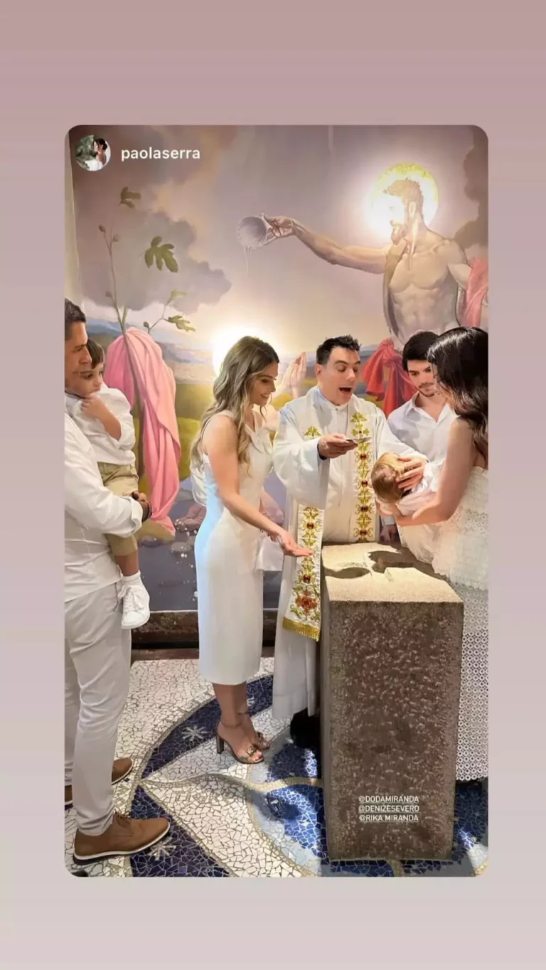 Η ευτυχισμένη μητέρα ήταν ντυμένη μάλιστα στα λευκά και κρατούσε στην αγκαλιά της την μικρή… Giulia, ενώ στο πλευρό της βρισκόταν ο Álvaro de Miranda Neto, και ο γιος τους, Dodinha.