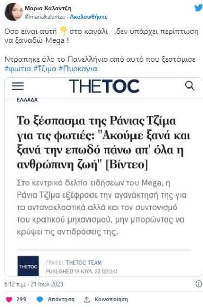 Η φράση της Ράνιας Τζίμα για τις φωτιές και το ‘κράξιμο’ στο Twitter