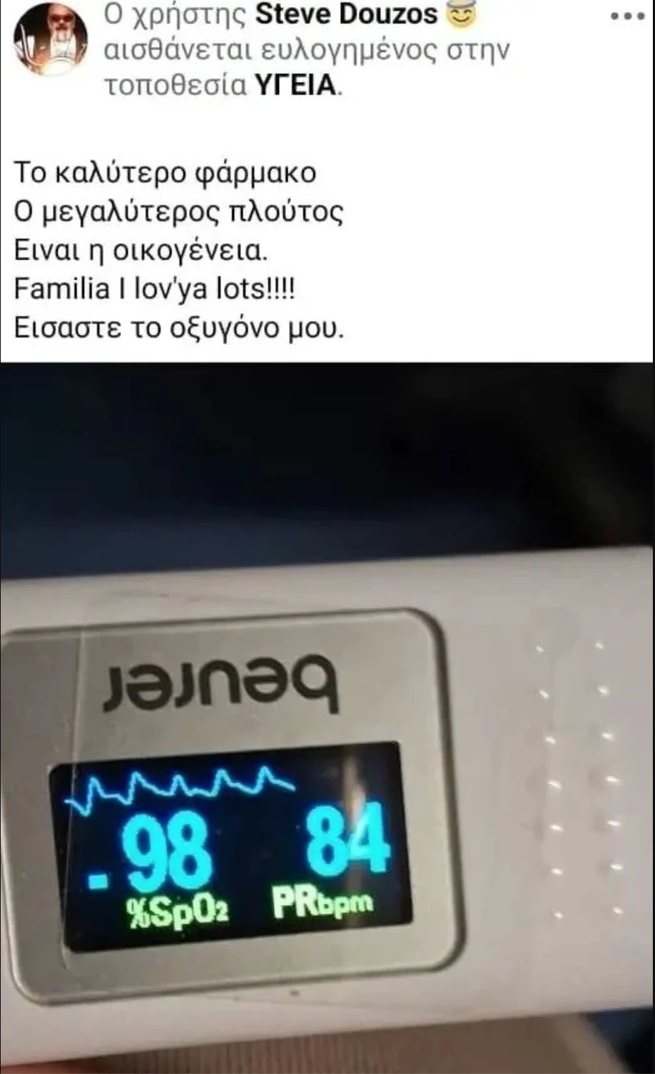 Σύμφωνα με τις πληροφορίες, ο Στηβ Ντούζος νοσηλεύεται σε ιδιωτική κλινική στα βόρεια προάστια της Αθήνας. Παρά την κρισιμότητα της κατάστασης, ο ηθοποιός επέλεξε να μοιραστεί μια φωτογραφία με τους διαδικτυακούς του φίλους, στέλνοντας ένα μήνυμα αισιοδοξίας και αγάπης.