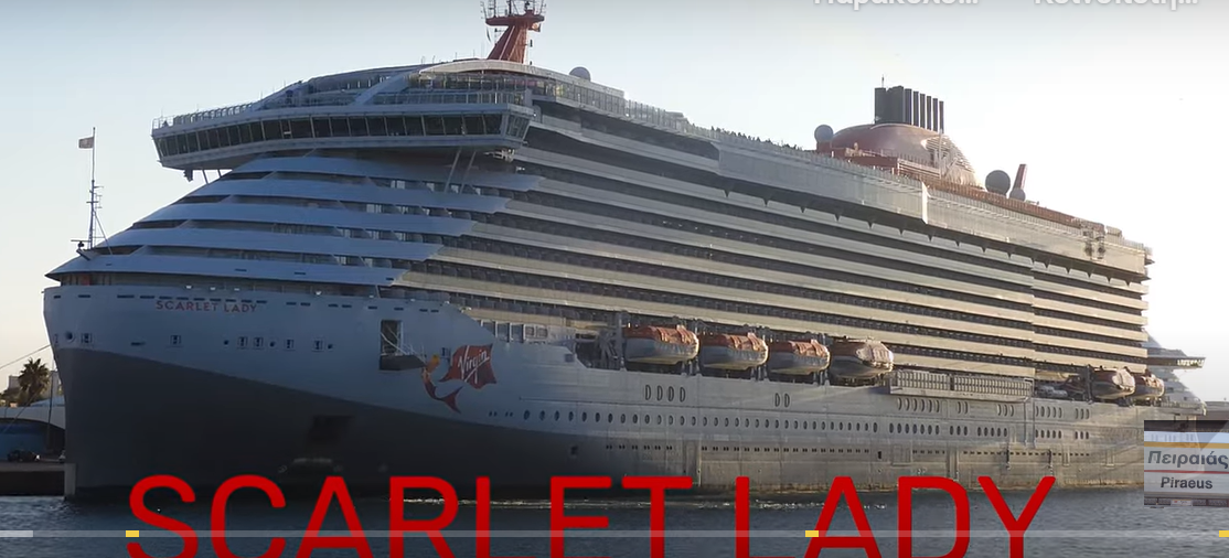 Το κρουαζιερόπλοιο «Scarlet Lady» έκανε την παρθενική της εμφάνιση στο λιμάνι της Πειραιάς. Ανήκει στην Virgin Voyages. Την εταιρεία του Βρετανού Επιχειρηματία Ρίτσαρντ Μπράνσον.
