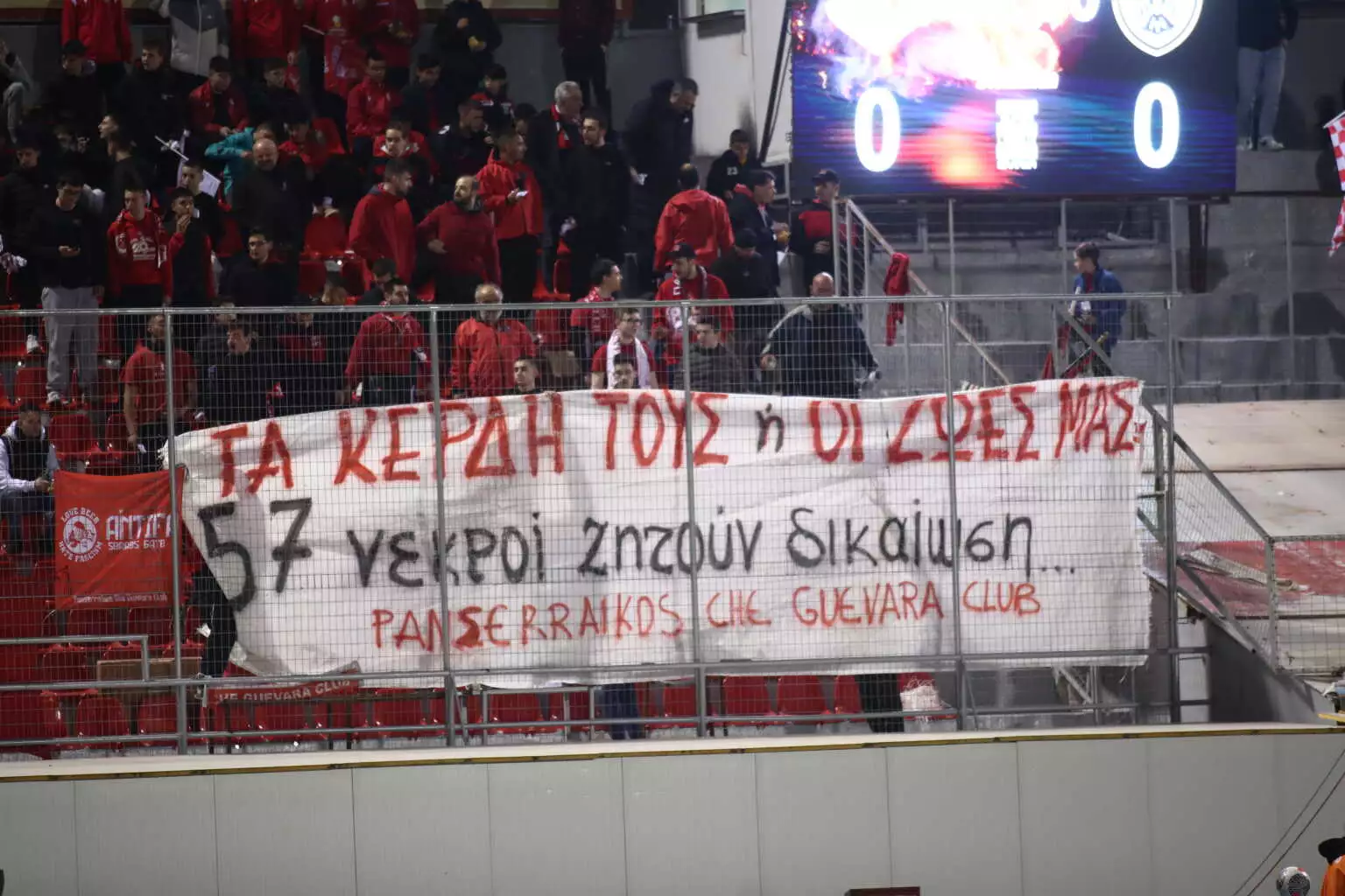 “Οι ψυχές των νεκρών στην κοιλάδα των Τεμπών, ήταν η θυσία για τις μίζες των πολιτικών”, ανέφερε το χαρακτηριστικό μήνυμα σε πανό στη Λεωφόρο… Το οποίο αναρτήθηκε μέσα σε χειροκρότημα από όλους τους οπαδούς, κατά τη διάρκεια του Παναθηναϊκός – Άρης.