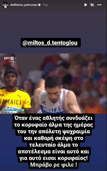 «Όταν ένας αθλητής συνδυάζει το κορυφαίο άλμα της ημέρας του την απόλυτη ψυχραιμία και καθαρή σκέψη στο τελευταίο άλμα είναι αυτό και γι’ αυτό είσαι κορυφαίος. Μπράβο φίλε».