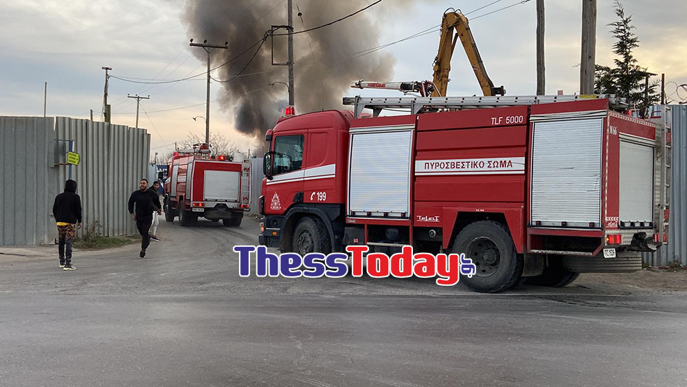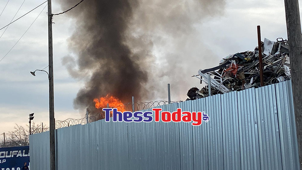 Μεγάλη φωτιά σε εξέλιξη σε μάντρα ανακύκλωσης μετάλλων στα Διαβατά στη Θεσσαλονίκη.