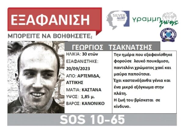 Η ΓΡΑΜΜΗ ΖΩΗΣ, ειδοποιήθηκε από τους οικείους του το βράδυ της Δευτέρας 25/09/2023 και μετά τη συγκέντρωση των απαιτούμενων δικαιολογητικών, ενεργοποιεί τον Κοινωνικό Συναγερμό SILVER ALERT, για την κινητοποίηση όλων για την ανεύρεσή του.