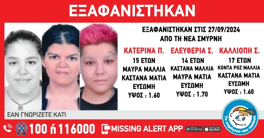 Συναγερμός στη Νέα Σμύρνη: Εξαφανίστηκαν 3 ανήλικα κορίτσια από δομή φιλοξενίας! Η ανακοίνωση από το «Χαμόγελο του Παιδιού»