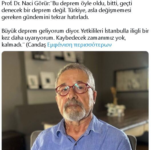 Μετά από μια σειρά ισχυρών σεισμών που έπληξαν την Κωνσταντινούπολη το μεσημέρι της Τετάρτης, ο κορυφαίος Τούρκος ειδικός σε θέματα σεισμών, καθηγητής γεωλογίας δρ. Νατζί Γκιορούρ, απηύθυνε μια ζοφερή προειδοποίηση, δηλώνοντας πως «τίποτα δεν έχει τελειώσει» για την πόλη.
