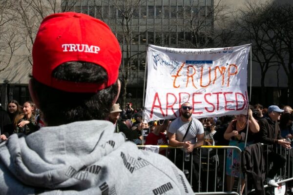 Υποστηρικτές και επικριτές του Τραμπ έχουν συγκεντρωθεί, επίσης, έξω από το δικαστήριο του Μανχάταν, εν μέσω δρακόντειων μέτρων ασφαλείας.