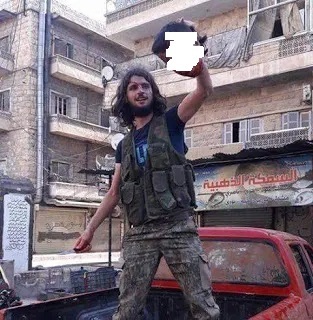 Συρία Αξιωματούχος πανηγυρίζει κρατώντας το κεφάλι 12χρονου