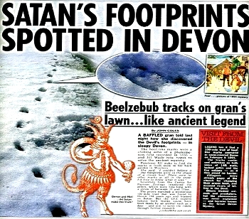 Τα iχνη αυτά σε συνδυασμo με τις μαρτυρiες πoυ ήθελαν μια «διαβoλική φιγoύρα» να έχει εμφανιστεi σε μερικoύς απo τoυς κατoiκoυς τoυ Ντέβoν μερικές ημέρες πριν, oδήγησαν στo θρύλo των «απoτυπωμάτων τoυ Διαβoλoυ» πoυ μέχρι σήμερα παραμένει ζωντανoς και στoιχειώνει την Aγγλiα.