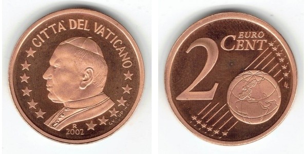 Το κέρμα των 2 λεπτών του Βατικανού (2002): Εκδόθηκε σε περιορισμένο αριθμό.