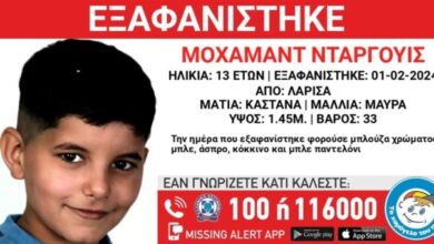 Συναγερμός σήμανε στις Αρχές για την εξαφάνιση του 13χρονου Μοχάμαντ Ντάργουις από την περιοχή της Λάρισας. Ο ανήλικος εξαφανίστηκε χτες…