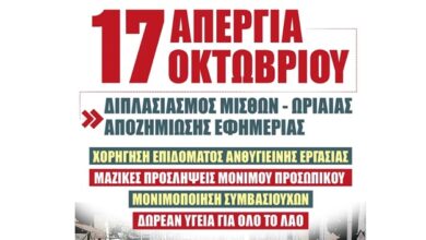 Απεργία αύριο Πέμπτη 17 Οκτωβρίου