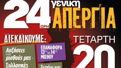 Την Τετάρτη 20 Νοεμβρίου 2024, οι εργαζόμενοι από διάφορους κλάδους ενώνουν τις δυνάμεις τους σε μια 24ωρη γενική επιχείρηση. Διεκδικώντας…