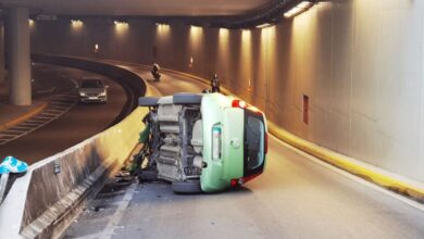 Νέα Φιλαδέλφεια: Τροχαίο – Ανατροπή αυτοκινήτου σε υπόγεια γέφυρα