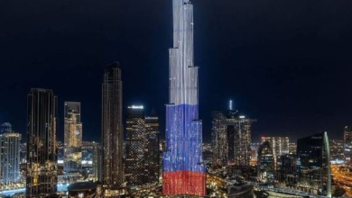 Ο Burj Khalifa στα Ηνωμένα Αραβικά Εμιράτα, εν μέσω «θυέλλης», φωτίστηκε στα χρώματα της ρωσικής σημαίας για την ημέρα της…