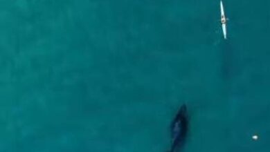 Αυστραλία: Να σημειωθεί ότι στην περιοχή έχει καταγραφεί ρεκόρ με 5.092 φάλαινες. Φάλαινα κάνει βόλτες με έναν αθλητή καγιάκ. Ένα…