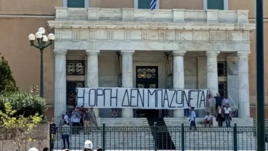 Μία ομάδα ατόμων μπήκε το μεσημέρι της Κυριακής, γύρω στις 13:00. Στο προαύλιο της Βουλής και κρέμασε πανό για τα…