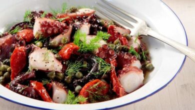 Χταπόδι με λιαστές ντομάτες και κάπαρη