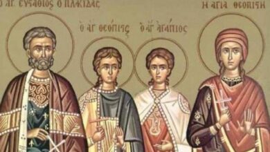 Στις 20 Σεπτεμβρίου, το ορθόδοξο εορτολόγιο τιμά τη μνήμη του Αγίου Μεγαλομάρτυρος Ευσταθίου και της συνοδείας του: της συζύγου του…