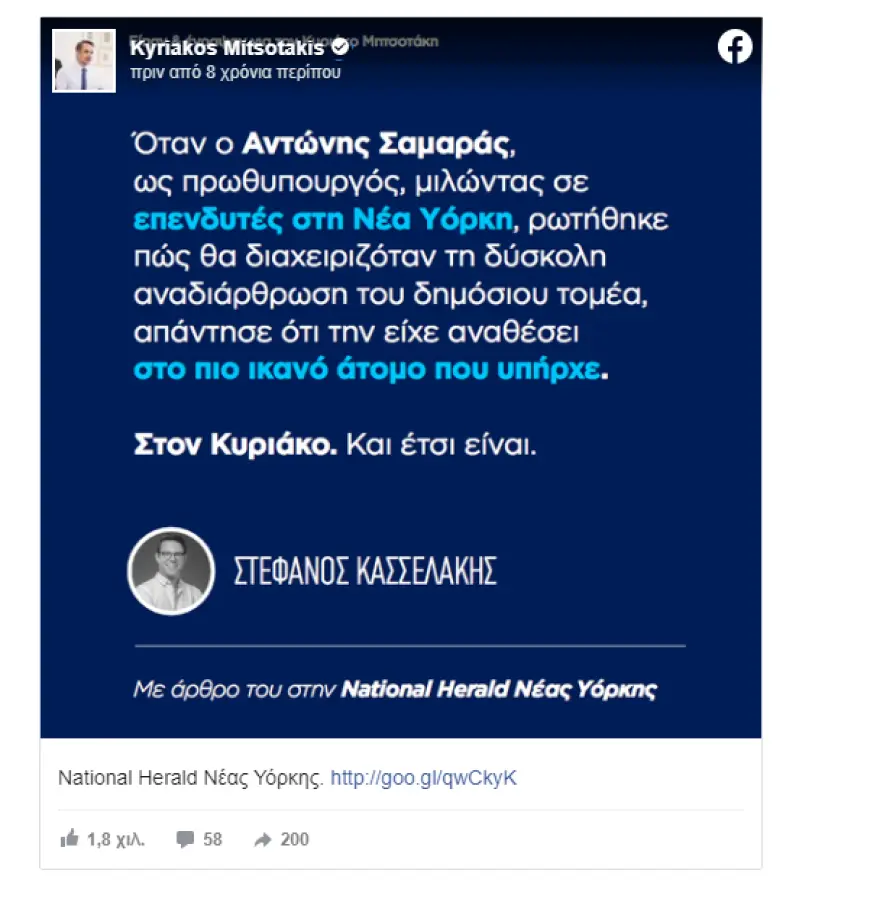 Γι’αυτό το λόγο απευθύνω μία παράκληση προς όσους, αντίθετα με τη γενιά μου στο εξωτερικό, έχουν την ευκαιρία να επενδύσουν στο μέλλον της πατρίδας μας μέσω των εκλογών της φιλελεύθερης παράταξης, να το κάνουν. Κοιτάξτε λίγο πιο κάτω από την επιφάνεια και δώστε στον Κυριάκο μία απροκατάληπτη αξιολόγηση. Δε θα είστε λίγοι που θα τον προσκαλέσετε όπως και εγώ να είναι συνοδηγός στην καθημερινότητά σας.