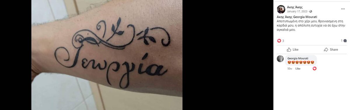 Μάλιστα, όπως φαίνεται και σε φωτογραφία που έφερε στη δημοσιότητα το Newsbomb.gr η αγάπη που έτρεφε ο Άκης για την 41χρονη Γεωργία ήταν τόσο μεγάλη, που είχε «χτυπήσει» τατουάζ το όνομά της στο χέρι του.
