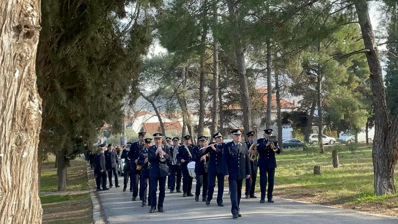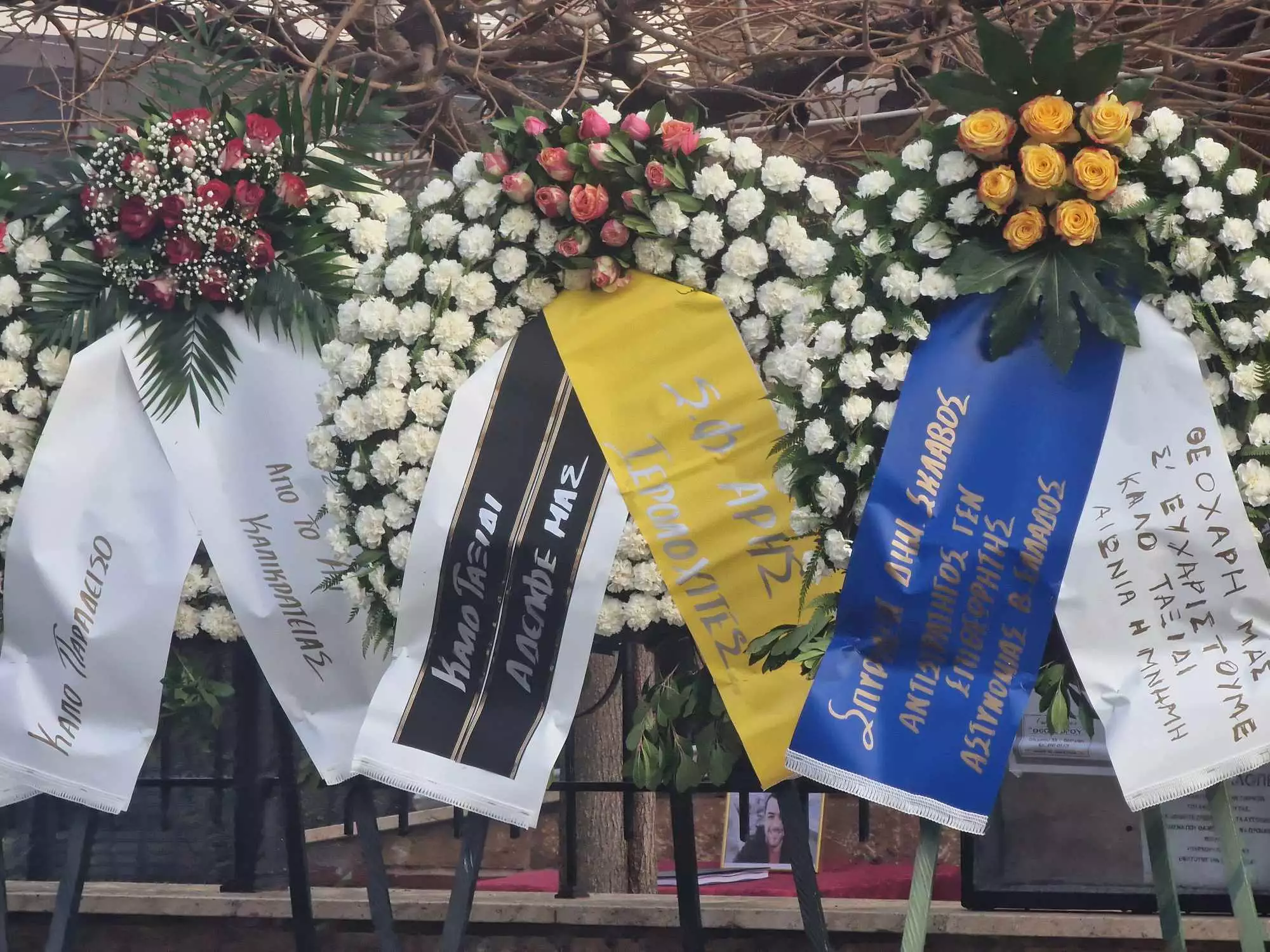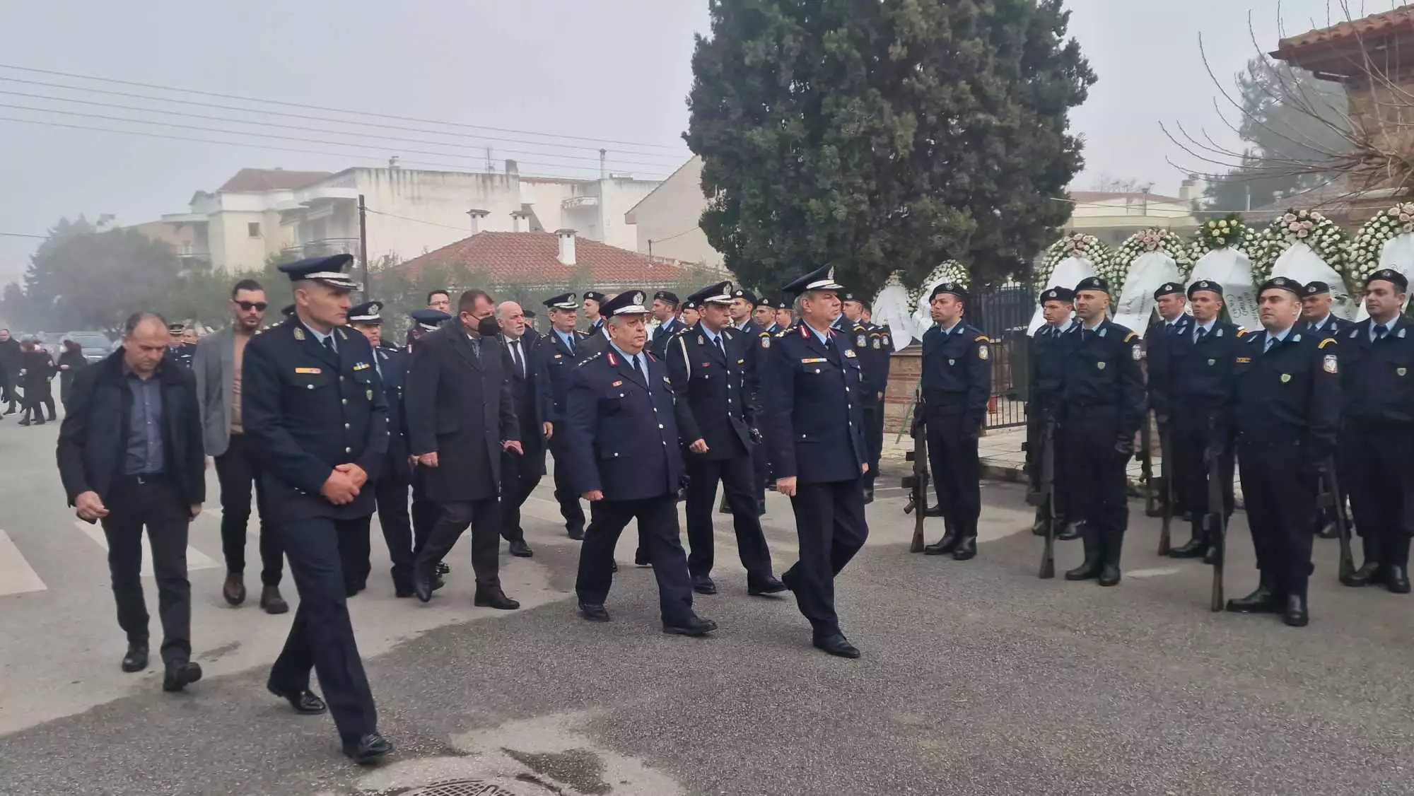 Η μπάντα της ΕΛ.ΑΣ. παιάνιζε πένθιμα ενώ το άγημα των αστυνομικών απέδωσε τιμητικές βολές στον αέρα.